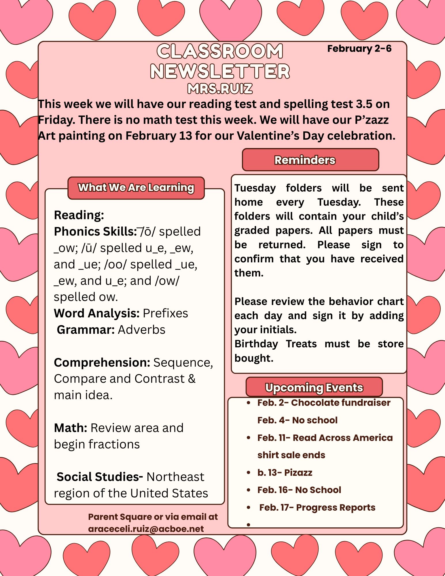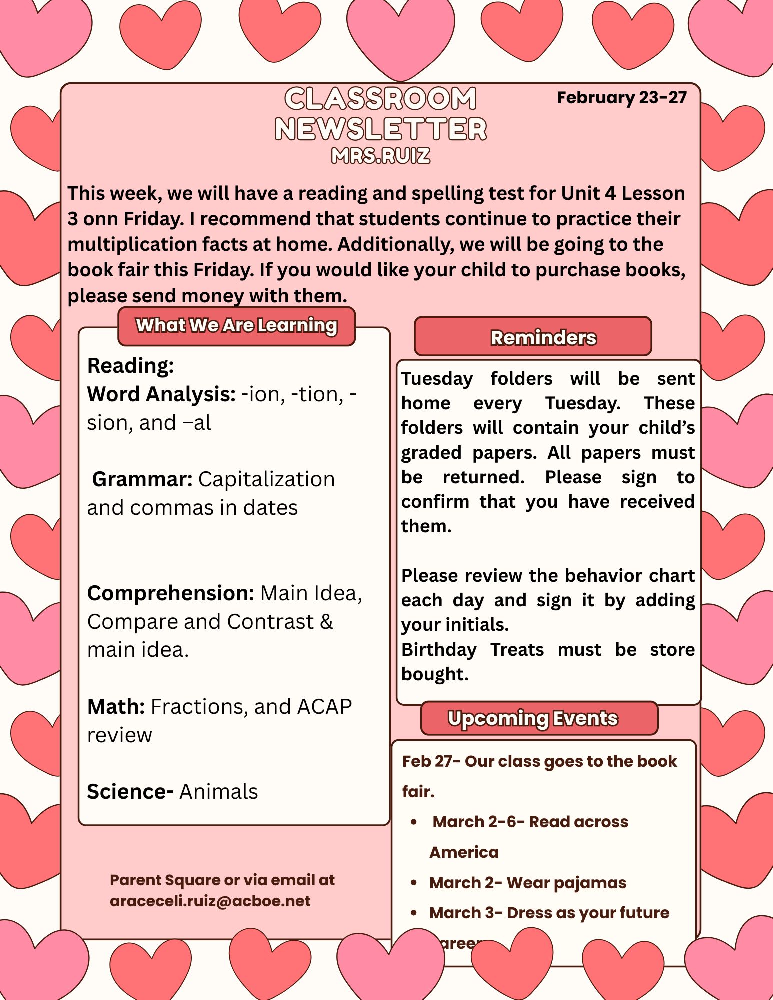 About Me: Welcome to Third Grade! My name is Araceli Ruiz, and I’m proud to be a third grade teacher here at Pine Level Elementary. I believe third grade is such an important year for building strong academic skills and encouraging students to become confident, independent learners. In my classroom, I focus on creating a positive and supportive environment where every student feels valued, respected and inspired to do their best.