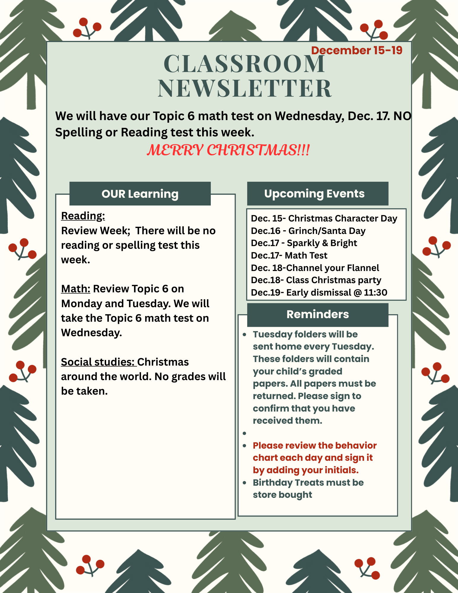 Dec.19- Early dismissal @ 11:30